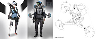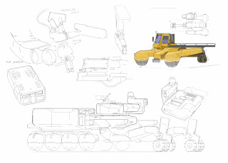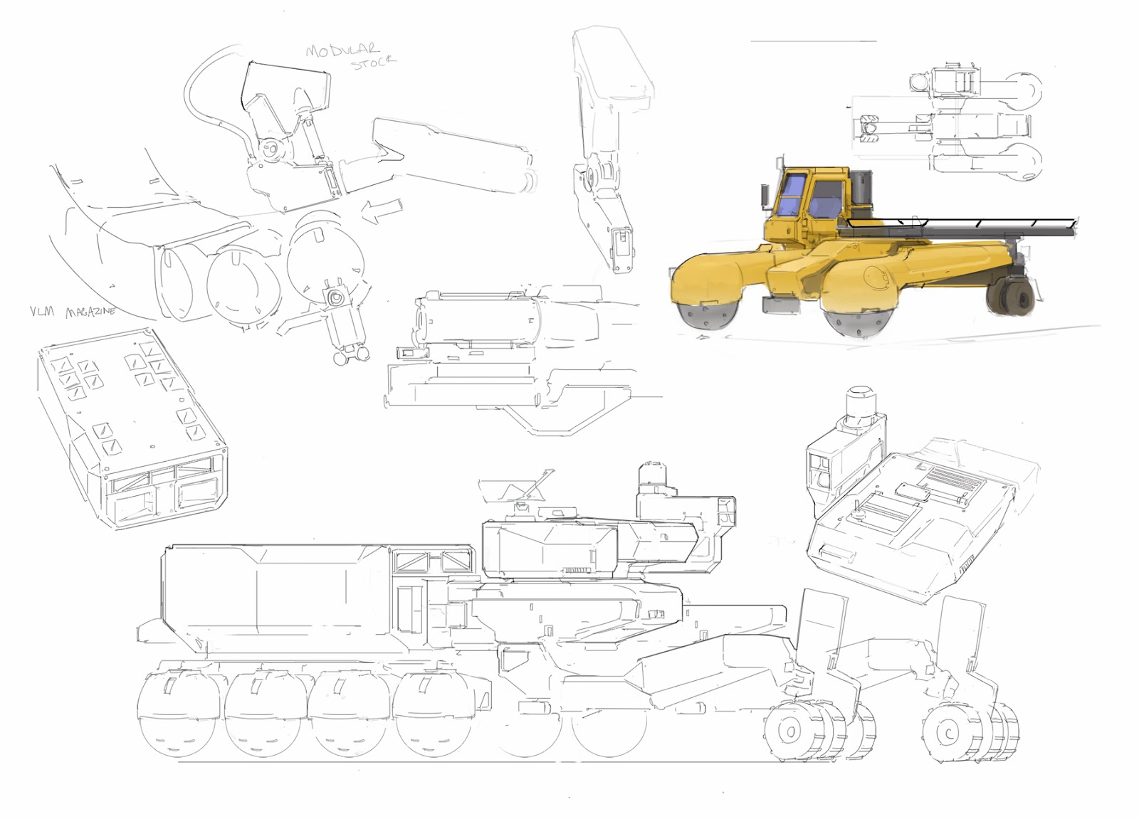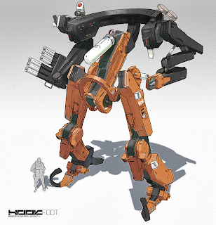 Mech for breaching and support/intimidation in urban environments [fleshed out the design sheet some more] and a sketch page from a few weeks ago, some of the elements I was messing with made it into the above design in the end. The club idea and head shape were inspired by the mantis shrimp and I imagine the clubs could have other applications outside of combat.