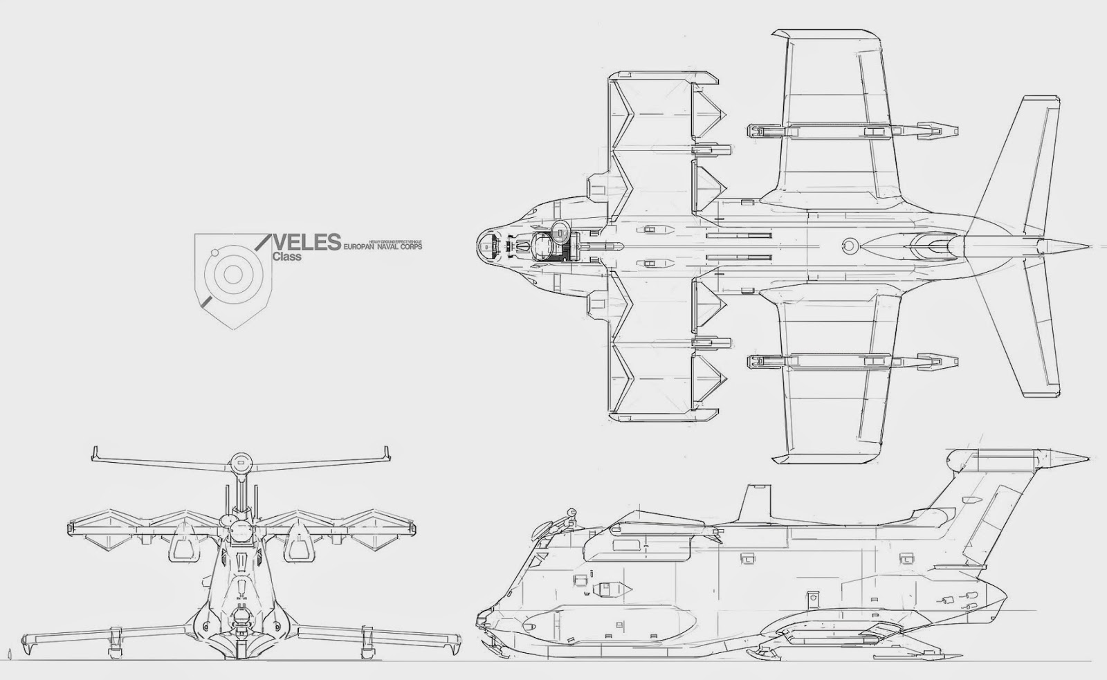 ekranoplans are great, and i wanted to have a go at designing a heavy ground effect vehicle. while mainly for infantry / armour transport, other variants come equipped with anti submarine warfare suites.